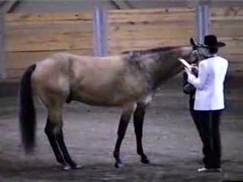 Buckskin Show }}- Buckskin Quarter Horse winning the Showmanship Blanket at the 4-H State Show in 1998.