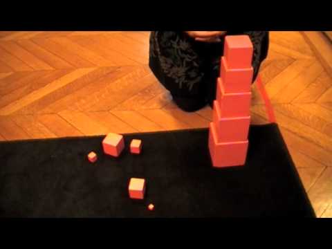 Montessori Activities - Pink Tower - CERDS - Why Is The Pink Tower Pink - It shows the presentation of sensorial material called as "The Pink Tower. This material has got ten cubes with same colour and having sizes small to big.