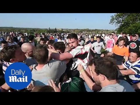 Residents of two villages took part in historic bottle-kicking game - Hallaton - Locals in the Leicestershire village of Hallaton were seen piling in to grab the wooden cask, when the game with rival Medbourne started. Some had even ...